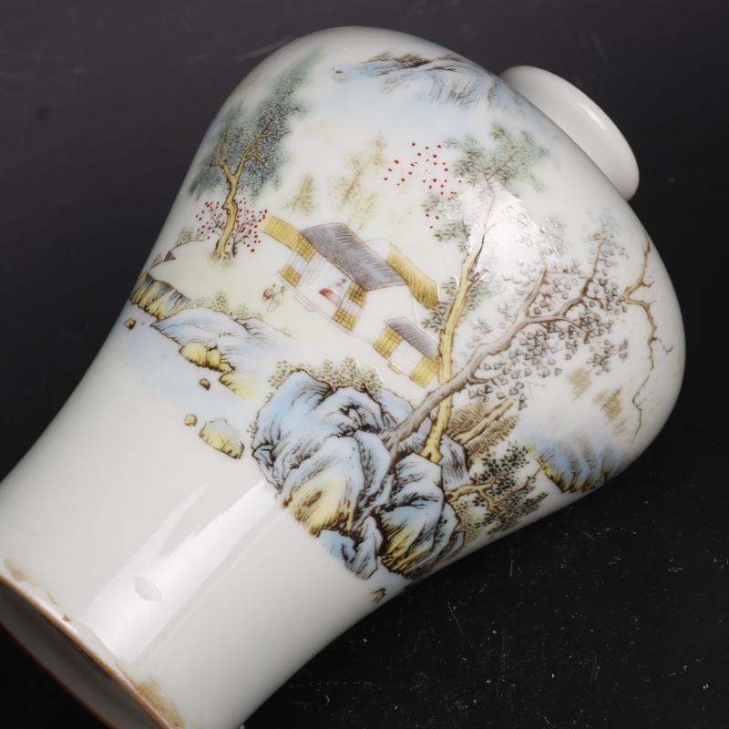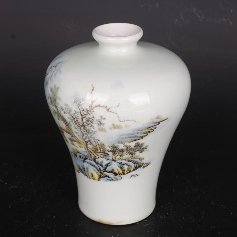 The Qing Tongzhi Pink Landscape Tattoo Plum Bottle Imitation Ancient Old Goods Porcelain Home Decoration Chinese Swing Piece Antique Ancient Play Collection