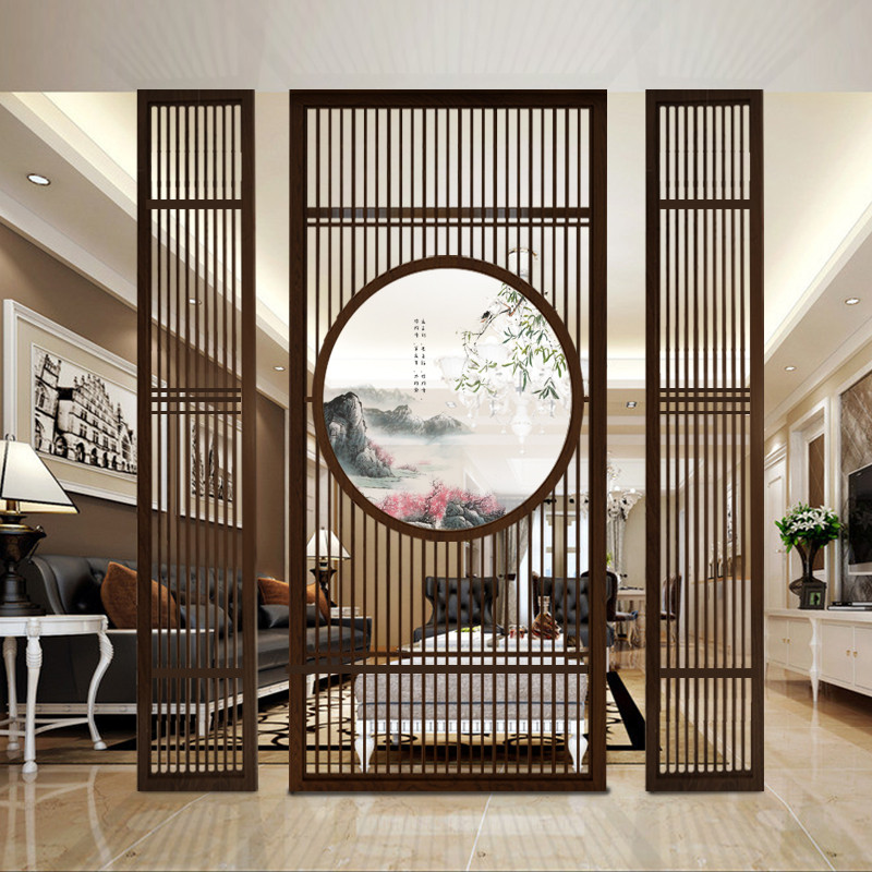 New Chinese partition hollow living room screen decorated semi-transparent wall bedroom dining room fenced into solid wood mask