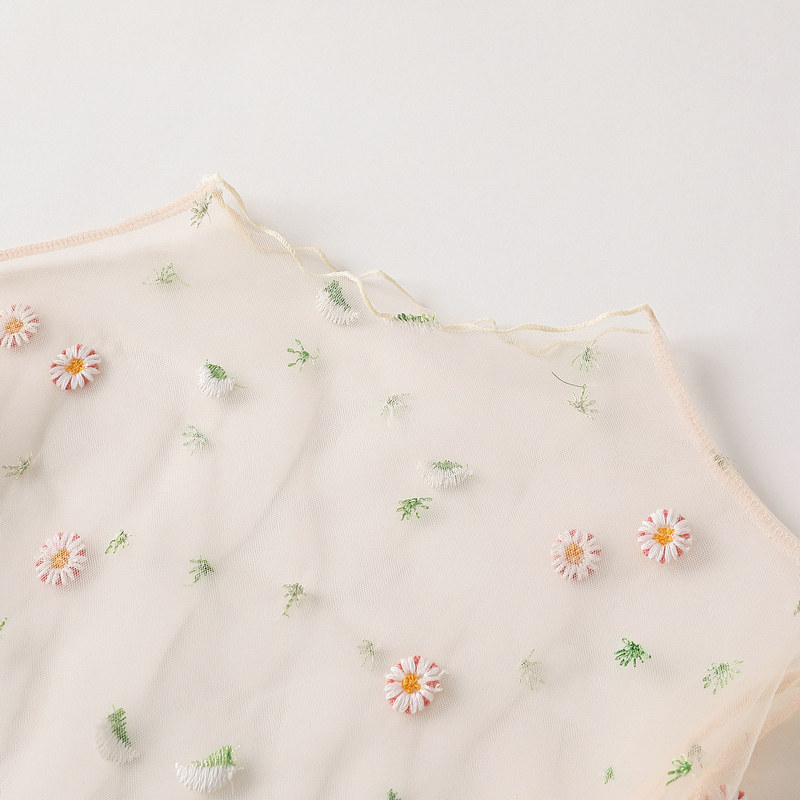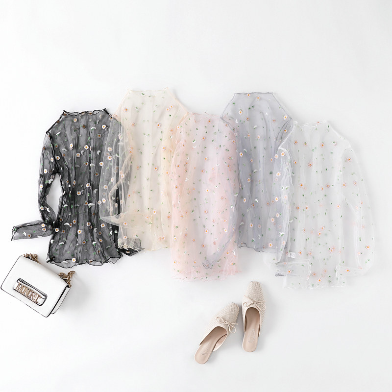 Spring and Autumn Mesh Bottoming Shirt Women's Thin Section Inside Hyuna Wind Yarn Mesh Transparent Small Daisy Lace Long Sleeve Top