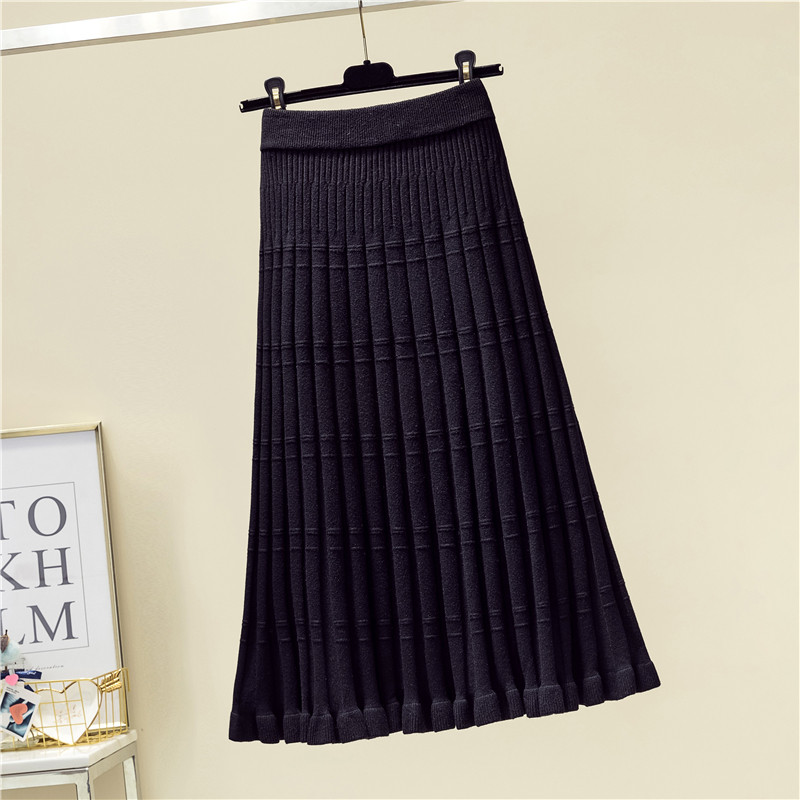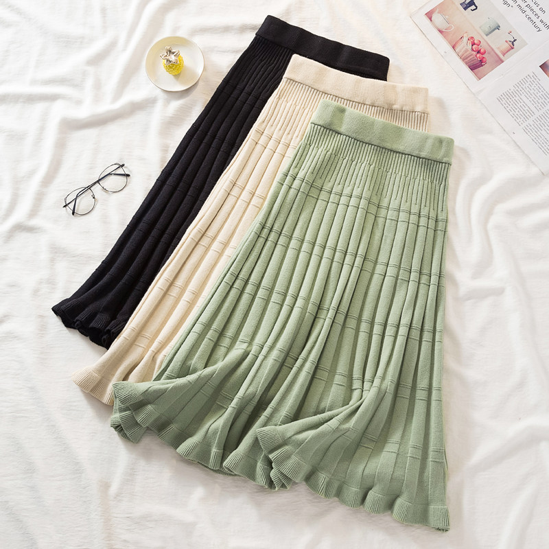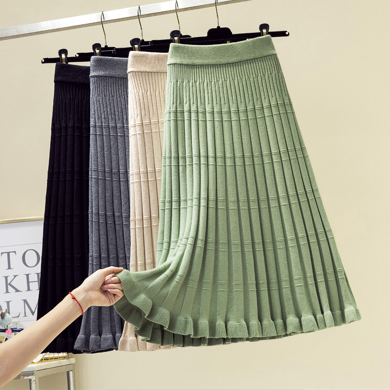 Knitted half-body dress woman 2022 autumn winter 100 hitch mid-length version 100 pleated bamboo knots with high waist and body tail wool dresses