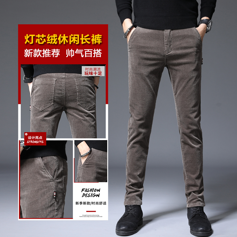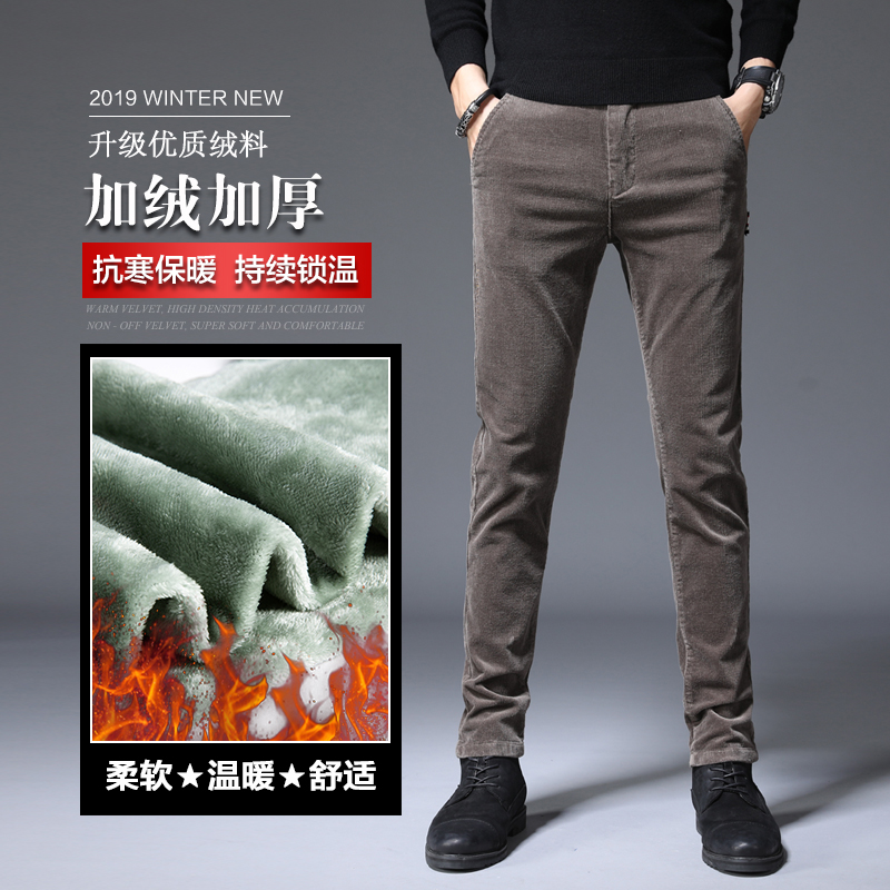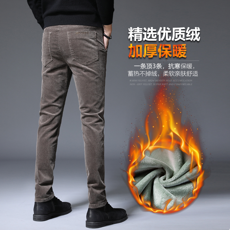 Fine Strips Suede Light Core Suede Men's Pants Men Plus Suede Thickened Autumn Winter Pants Winter Pants Winter Casual Pants Light Grass Suede External Wear