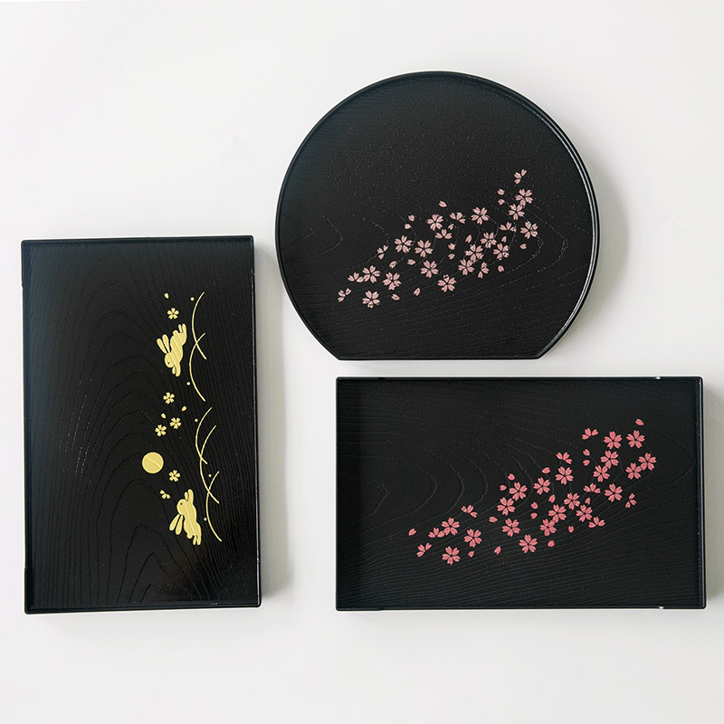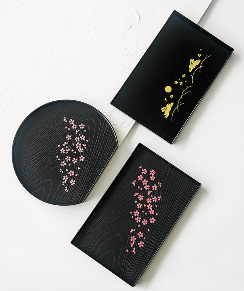 Half Moon Cherry tray * One rectangular cherry tray*One rectangular Moon Rabbit tray*One Half Moon Rabbit tray*One