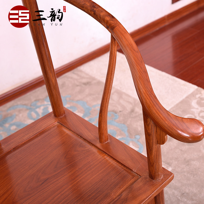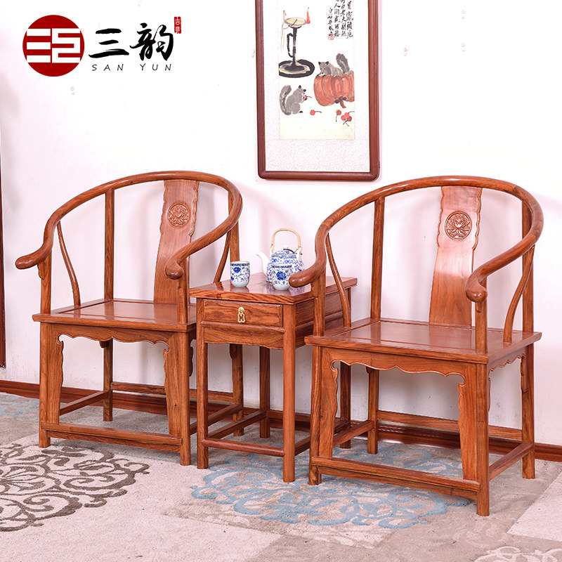 Three rhyme mahogany furniture hedgehog red sandalwood chair three-piece set Chinese rosewood solid wood Taishi chair official hat chair