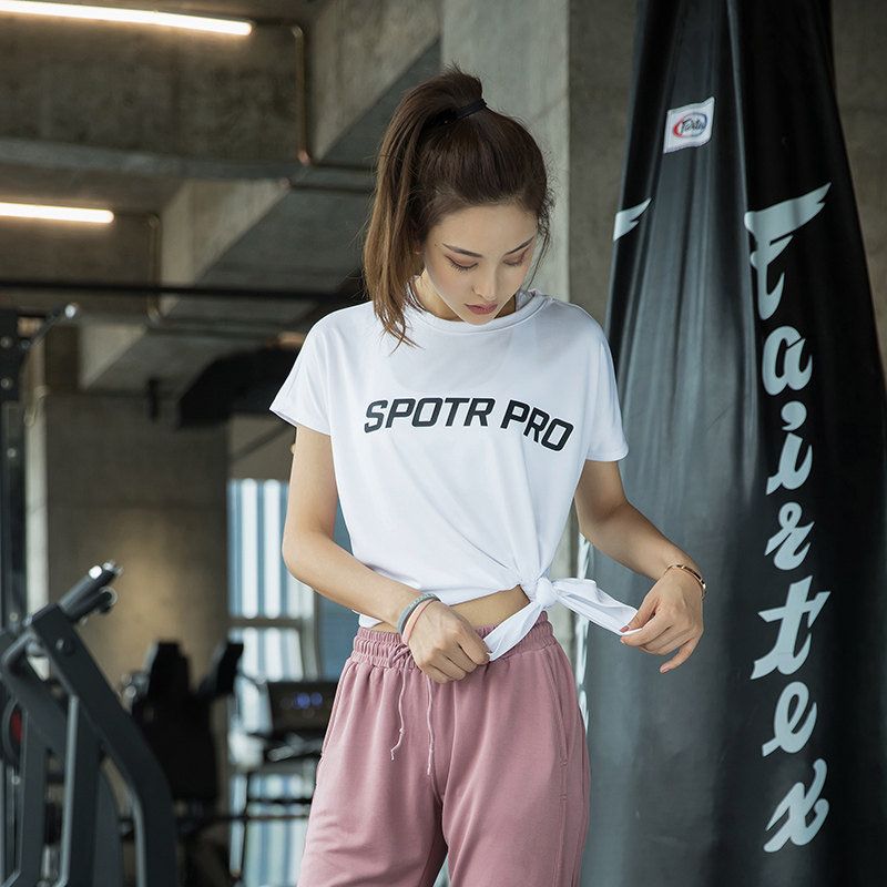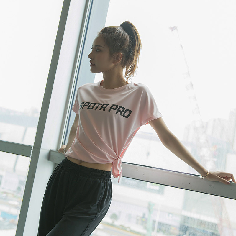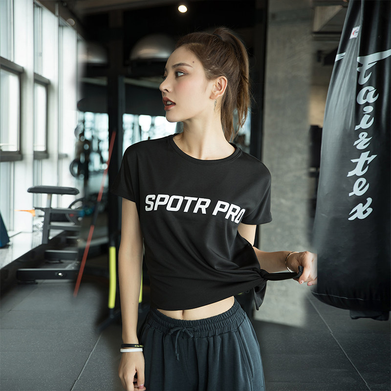 Yoga suit summer thin split short-sleeved sexy quick-drying top women's sports T-shirt loose running casual fitness clothes