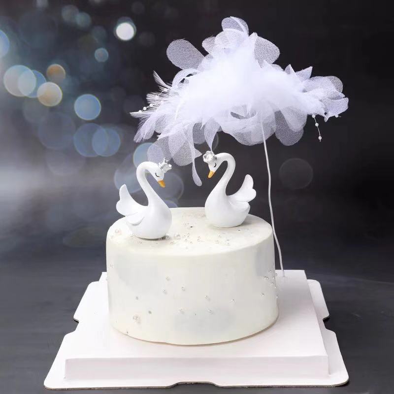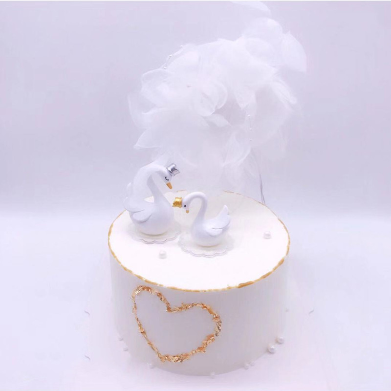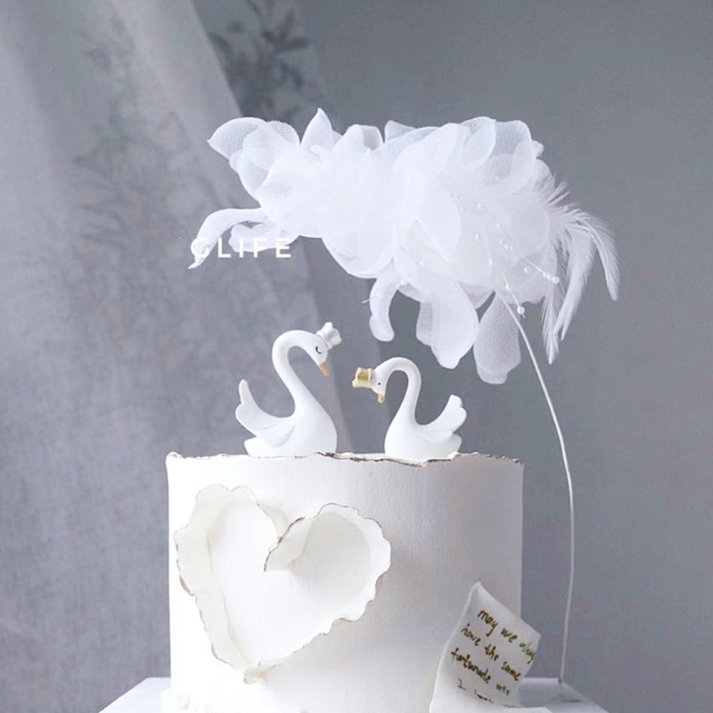 White swan golden crown Silver crown Birthday cake decoration decoration Pearl lace feather baking dessert table dress up accessories