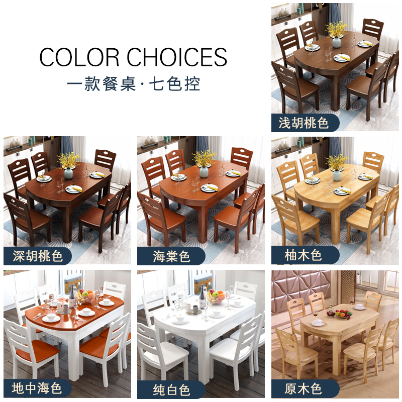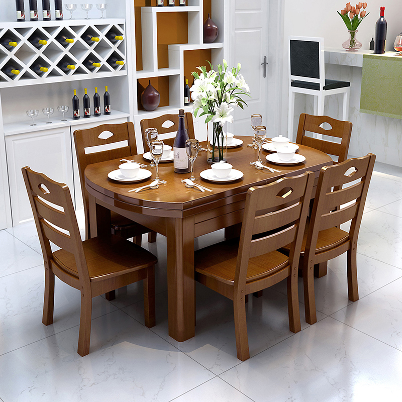 All solid wood dining table Small household round table retractable folding modern simple dining table Round dining table and chair combination