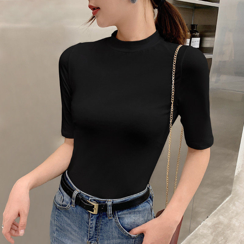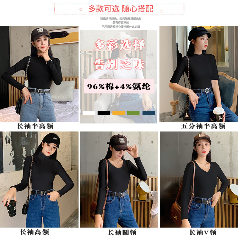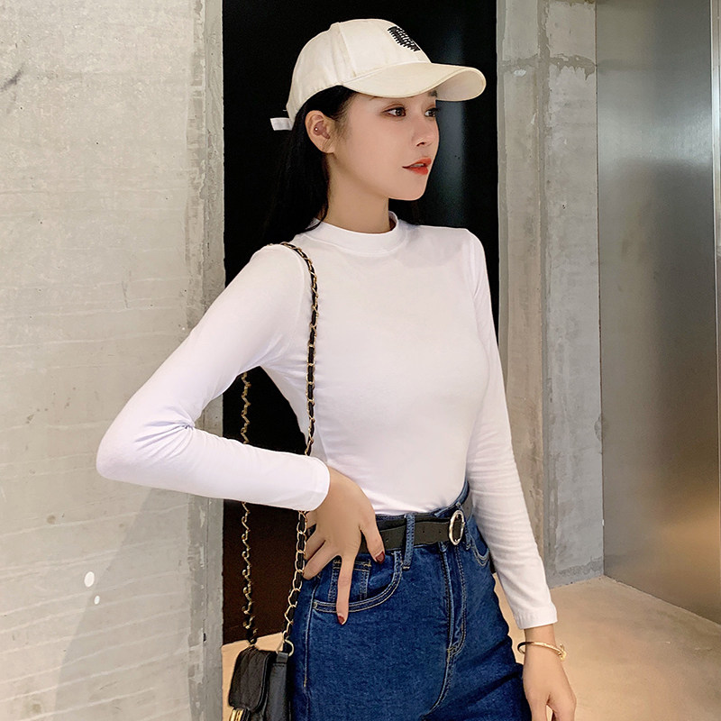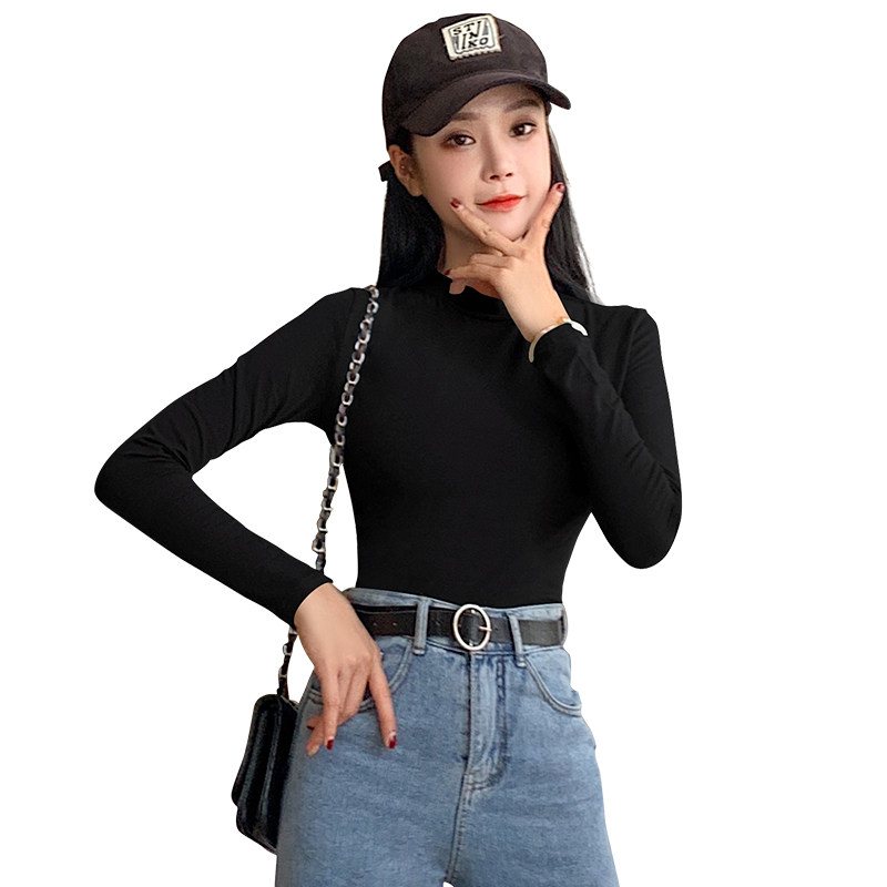 Semi - high - collar shirt thin 2020 spring clothes with a tight black long - sleeved tops T - shirt tide