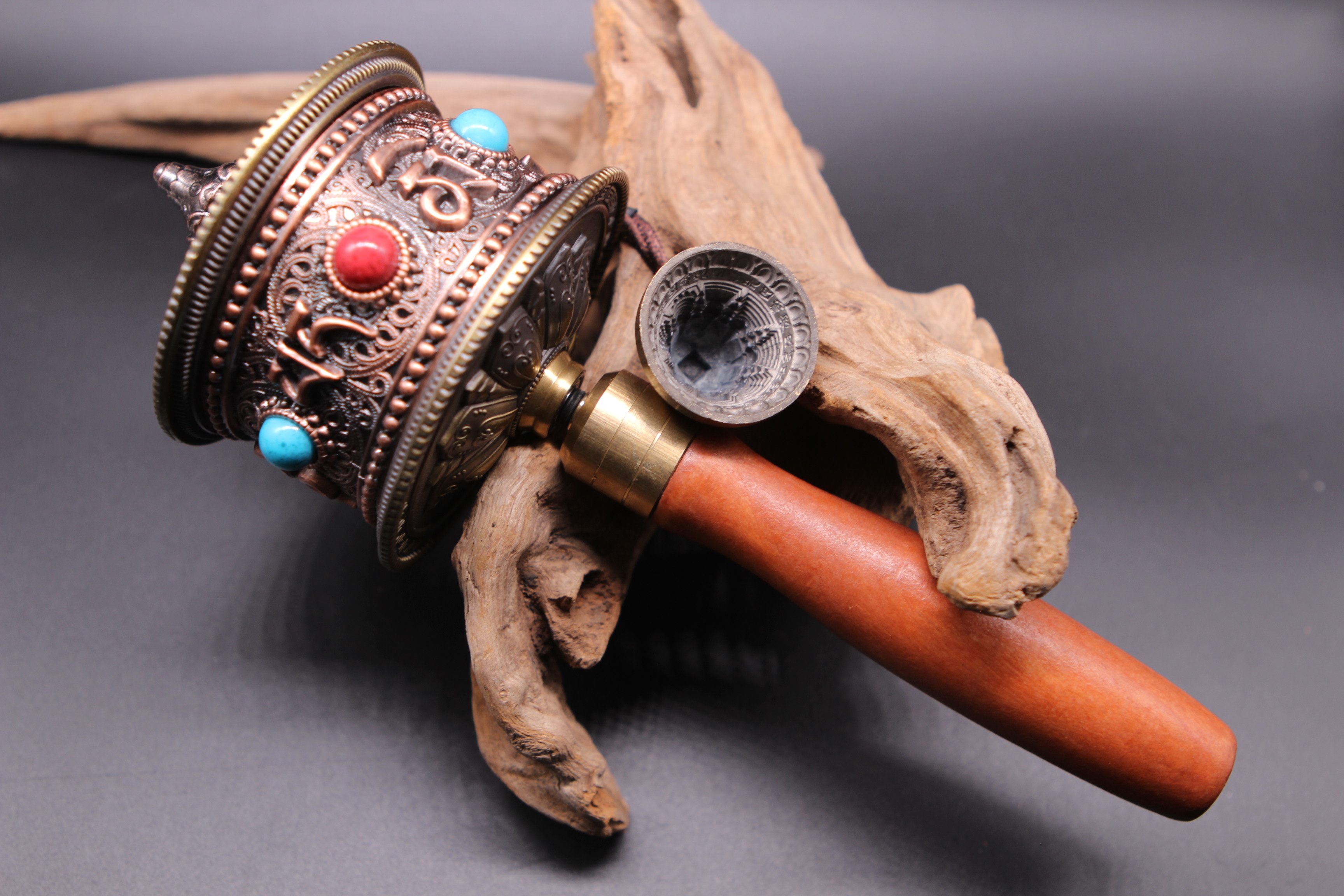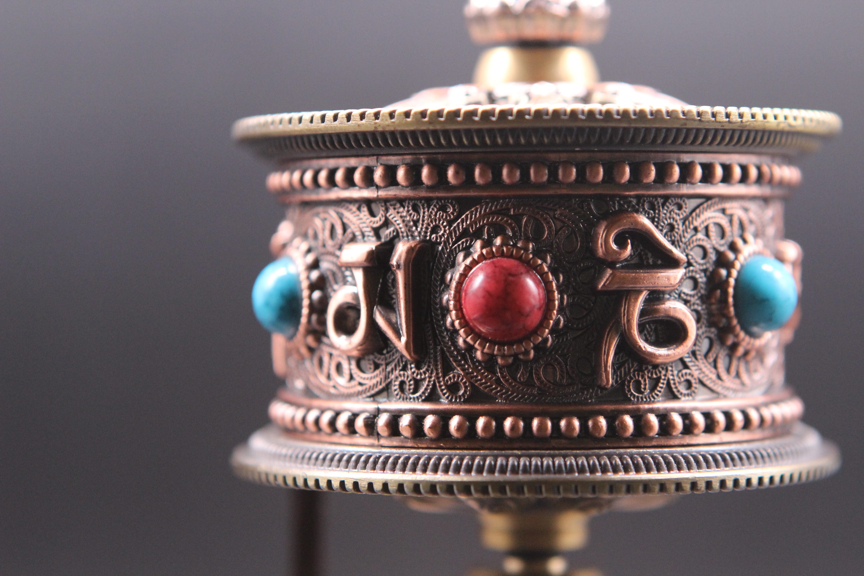 Hand-turned sutra wheel smooth pure copper stupa shape with base 86,000 Guanyin heart mantra Compassion heart sorrow wish