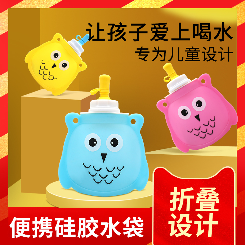 Children's Water Cup Silicone Kettle Water Bag Foldable Portable Outdoor Kettle Anti-fall Anti-choking Baby Instead of Suction Cup