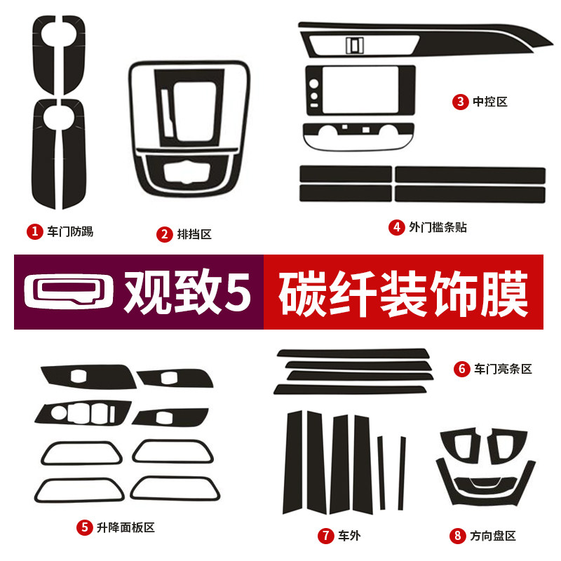 View to 3 models with the following options > > > View 3 (middle control area) 3D Black carbon fiber viewing to 3 (out of the car middle column area) 3D black carbon fiber viewing to 3 (car door anti-kick area) 3D black carbon fiber view