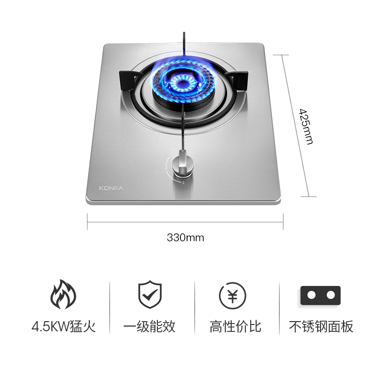 Konka gas stove single-port furnace energy-saving fire household single desktop liquefied gas stainless steel single head embedded gas furnace