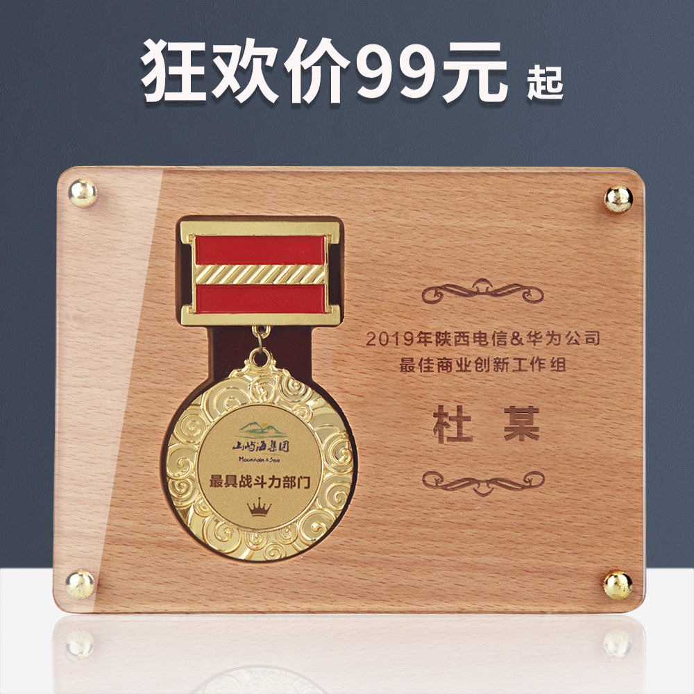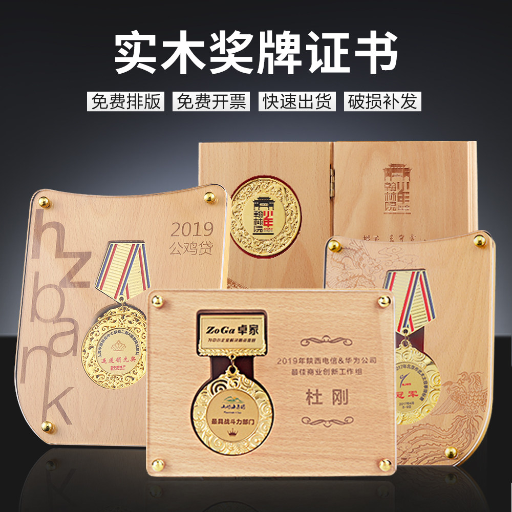 Solid Wood Trophies Medal to be made Custom Merit Medal Memorial Medal Wooden Wooden Care Sports Crystal Plaque