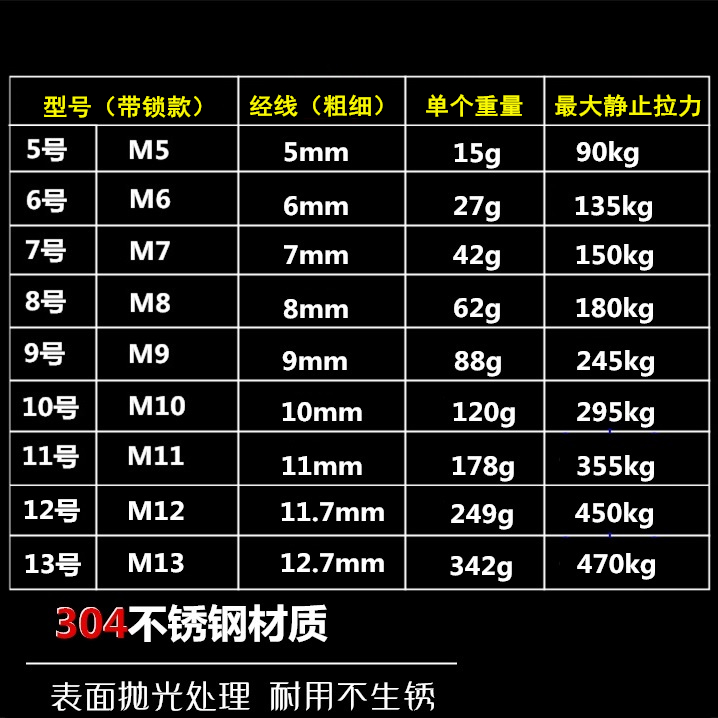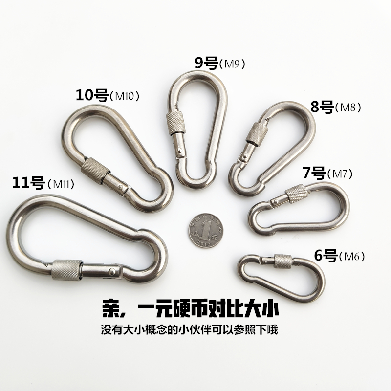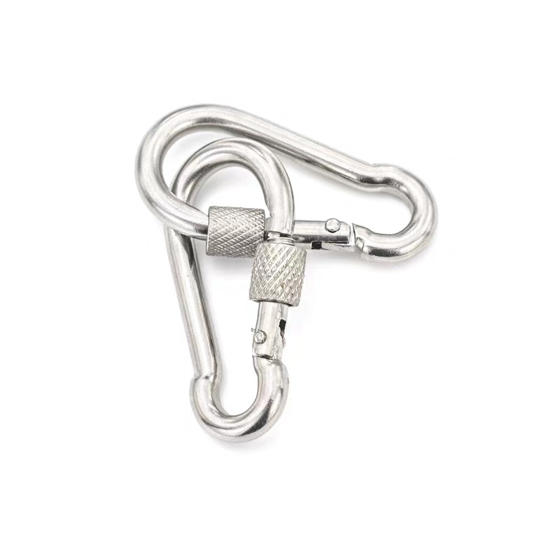 304 stainless steel with locked carabiner anti-rust safety buckle quick ring chain ring with lock padlock keychain