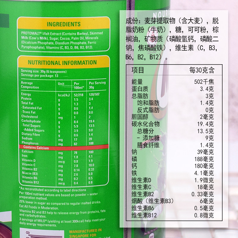 Nestle Milo MILO Cocoa Powder Brewed Nutritious Malt Chocolate Drink 1 8KG Singapore Sugar Reduced Version