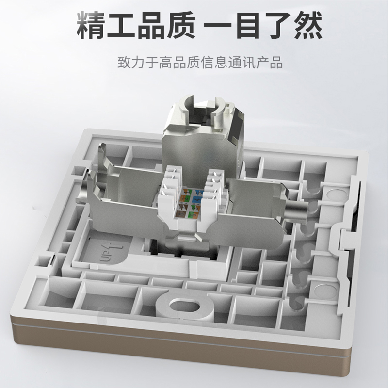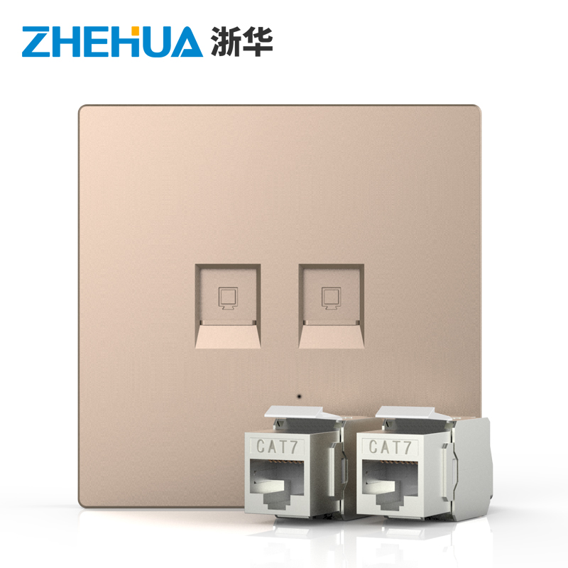 Zhehua CAT7 network cable panel socket Super 7 shielded network module free home CAT7 10 gigabit single port double hole gold white super six network cable module RJ45 one or two panels