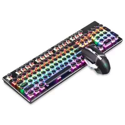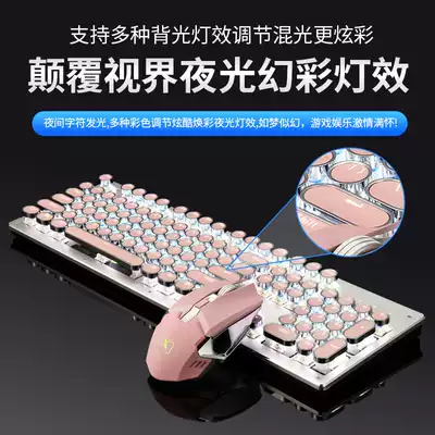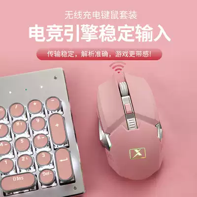 Rechargeable wireless mechanical keyboard mouse set Blue axis black axis game net red cute cherry pink girl heart notebook Desktop computer retro punk round key Home office typing