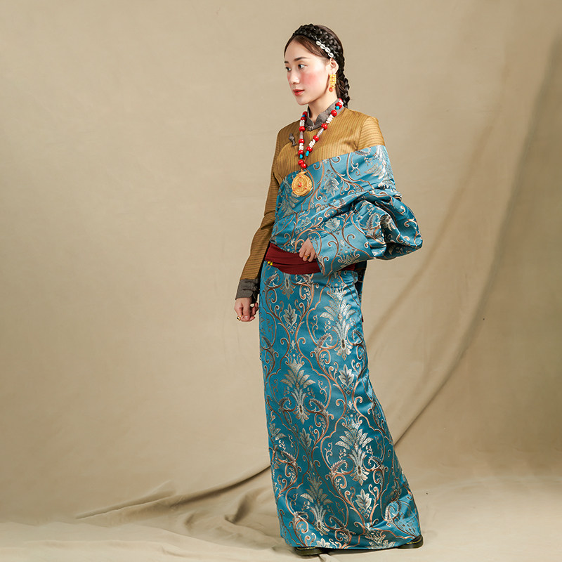 Tibetan dress female Amdo Tibetan robe Blue vines Tibetan spring and Autumn