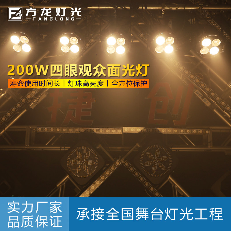 200 W Four-eye Spotlight (positive white) 6500K (light macro chip) 200 W quad-eye face light (warm color) 3200K (light macro chip) 200 W quad eye spotlight (