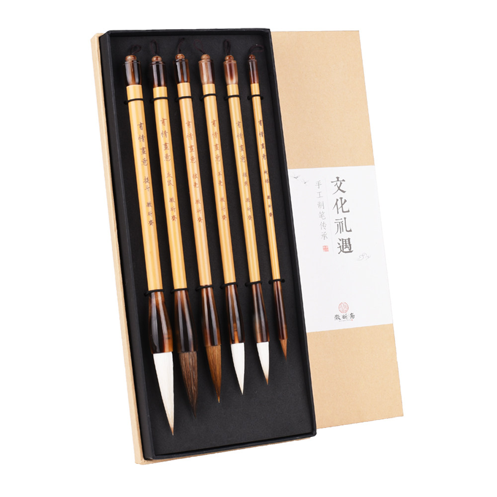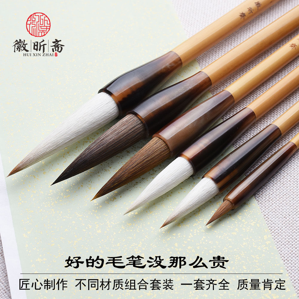 Hui Xinzhai brush set six sets of pure wolf small Kai brush professional calligraphy set four treasures Yanghao Zhongkai also fight Professional traditional Chinese painting set brush introduction calligraphy set