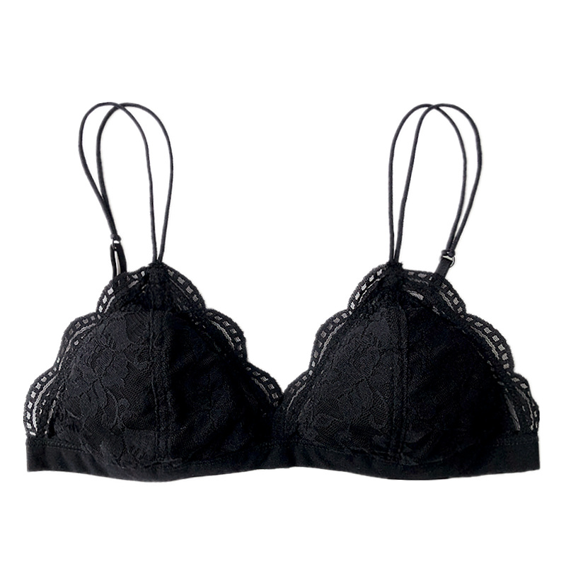 Summer French lace bralette thin bra triangle cup underwear Sexy big chest show small thin belt rimless bra