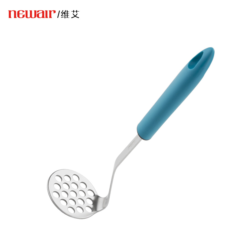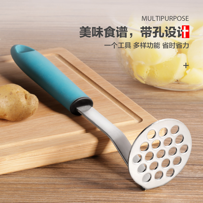 304 stainless steel potato pressed peddler-blue shank 304 stainless steel potato pressure peddler-black handle two pieces set