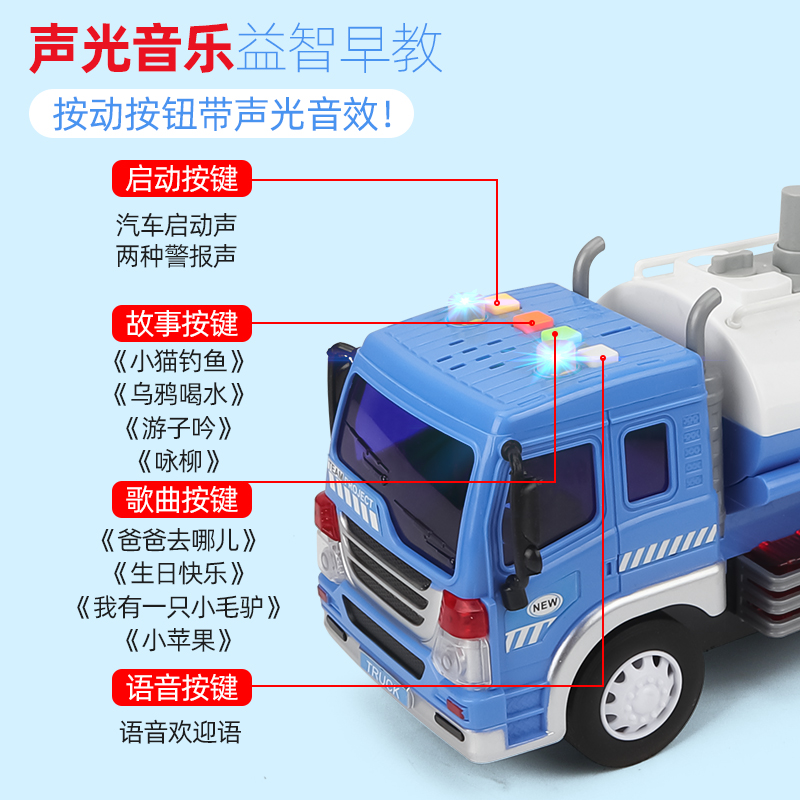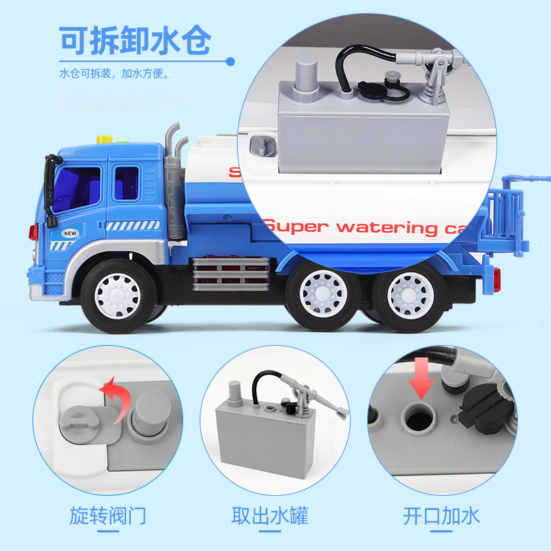 Can spray water Inertia Music sprinkler (blue) can spray water Inertia Music sprinkler (green) can spray water sprinkler blue can spray water fire truck can spray water sprinkler blue belt bucket sweeper can