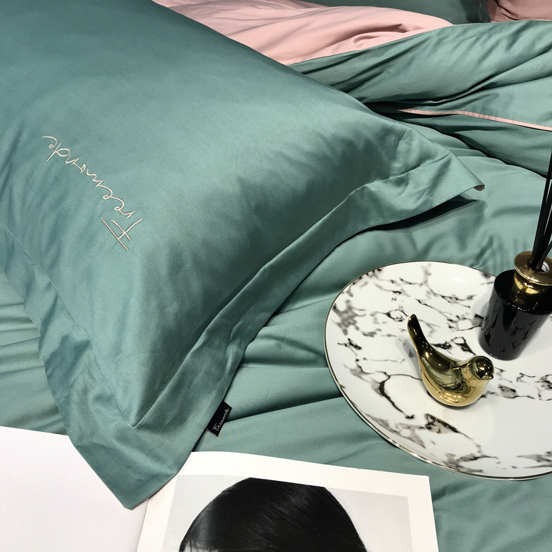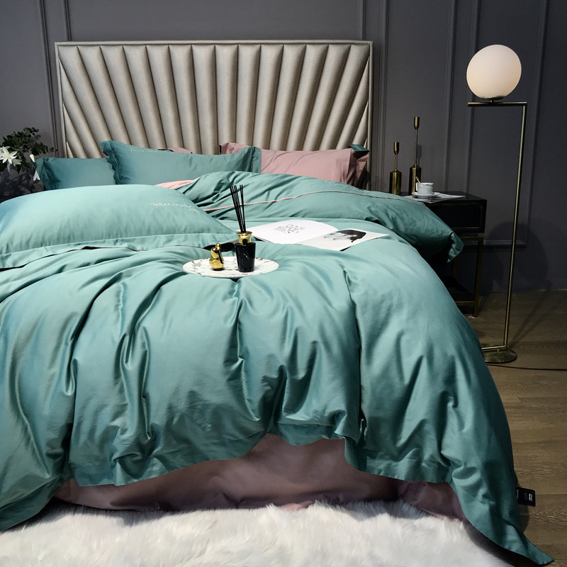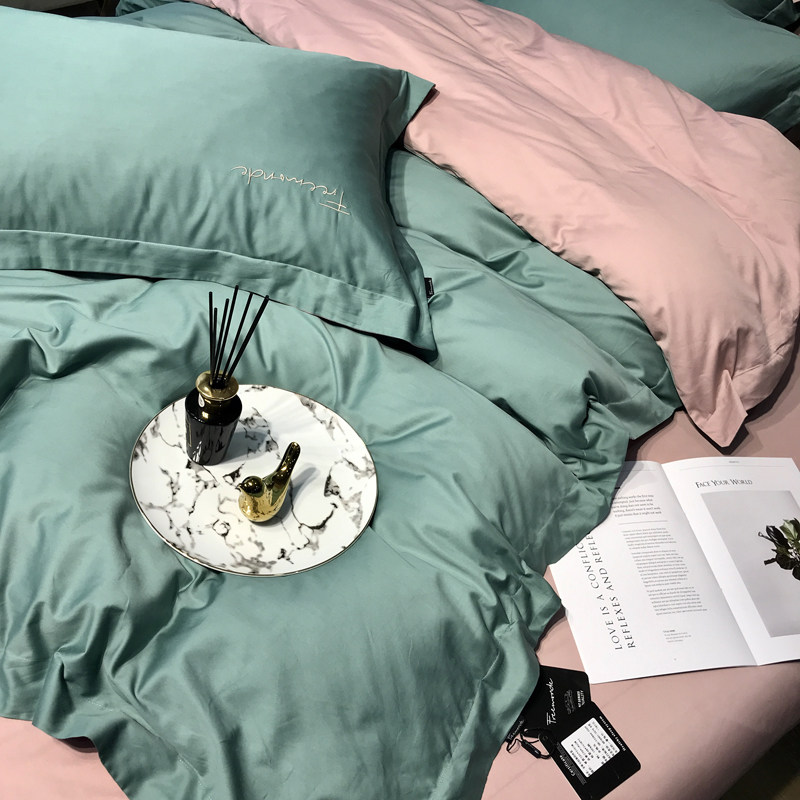 Long suede cotton four-piece set 60 Gon Satin Embroidered Pure Color Bed Bedding SKIN CARE FULL COTTON LINEN BED HAT PURE COTTON QUILT COVER