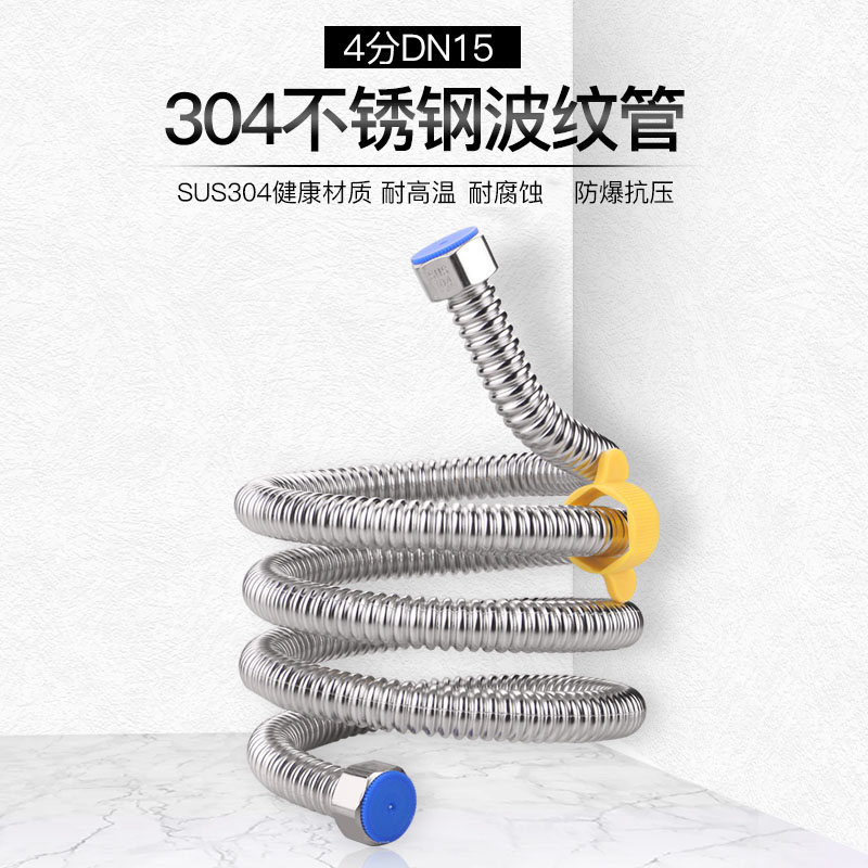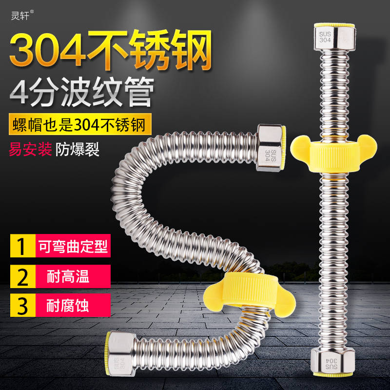 Lingxuan 4 points 304 stainless steel bellows angle valve connection water heater hot and cold water pipe explosion-proof metal hose