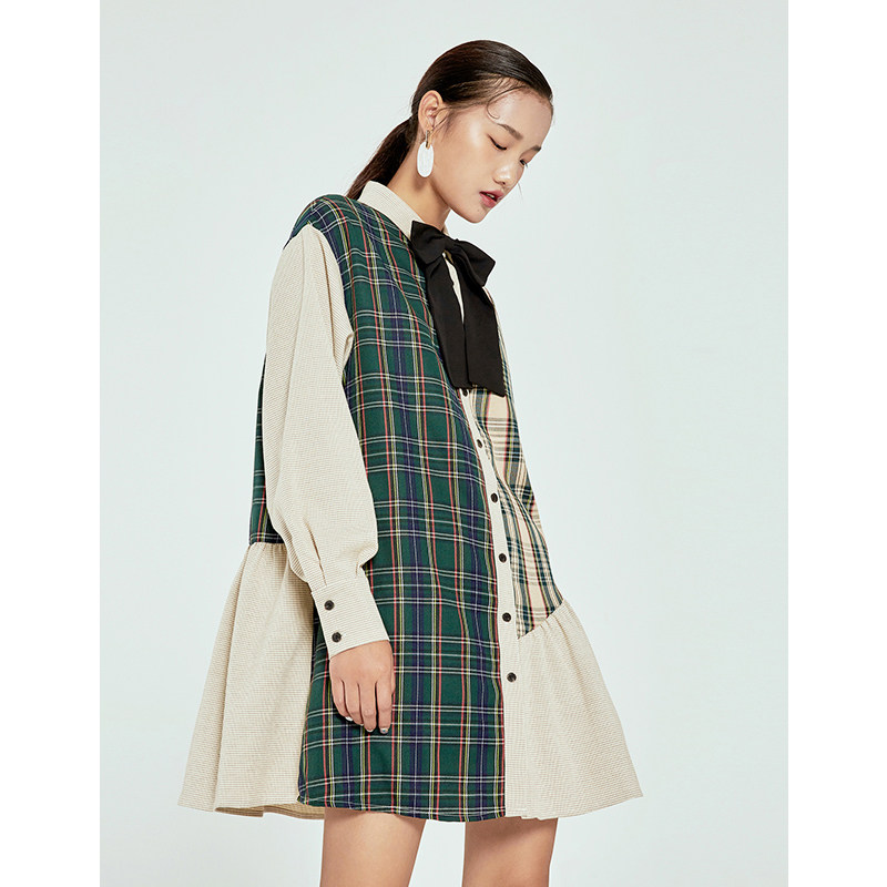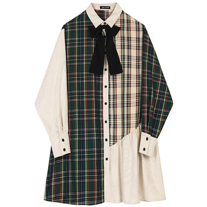 (with family name in the same style) shirt with dress for women's spring cover with slim fit and slim temperament splicing gill dress