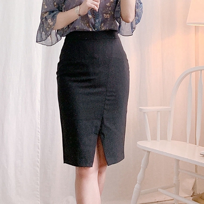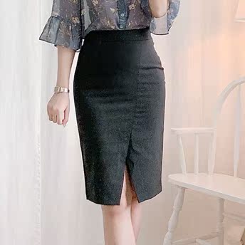 Stitching front split skirt hip small plaid solid color intellectual temperament Korean new