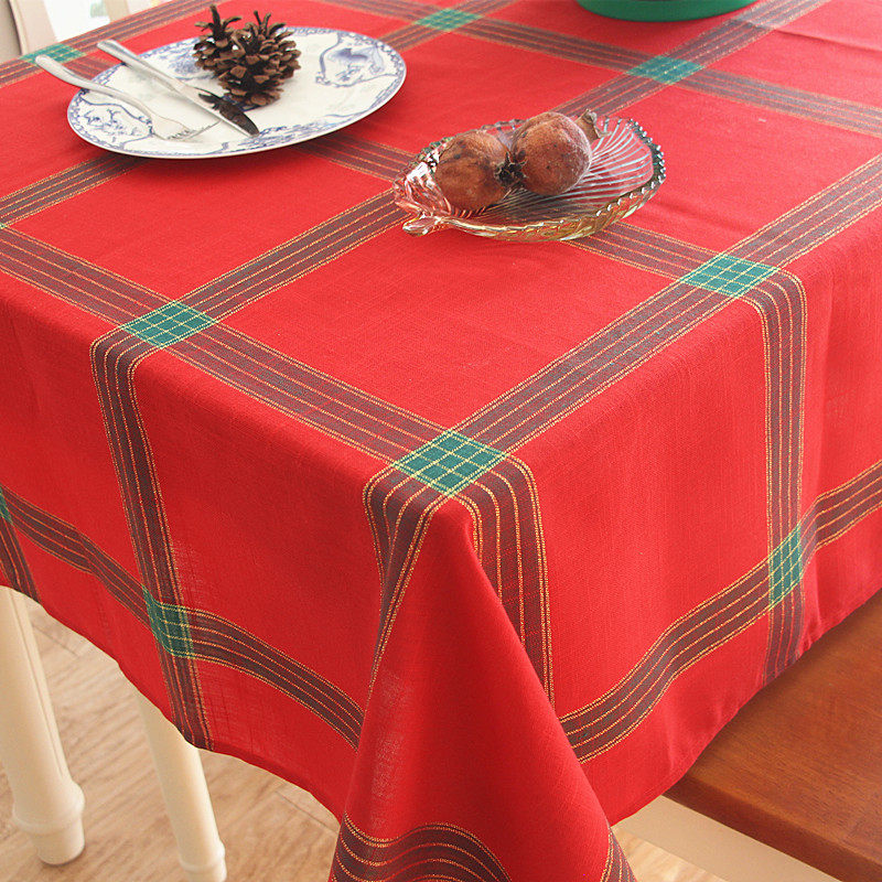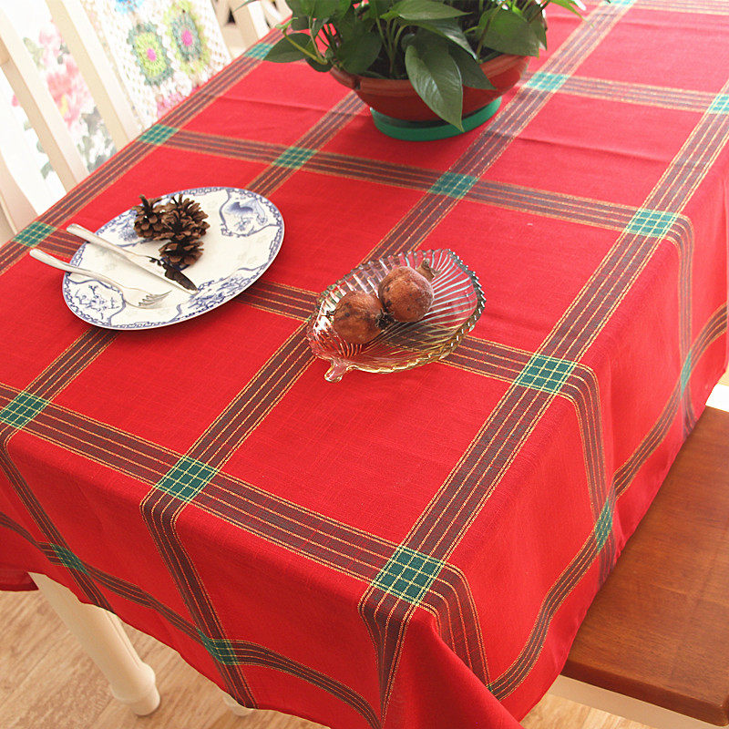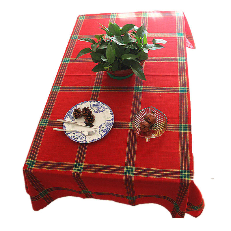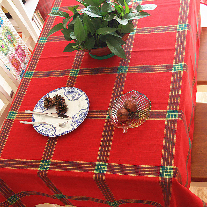 Nordic red plaid fabric tablecloth Gold silk Christmas table cloth Table flag Coffee table cover cloth New Year Christmas Red tablecloth