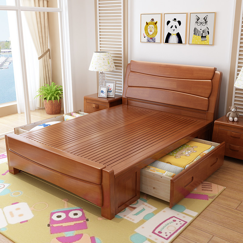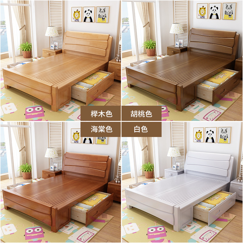 Solid wood bed 1 2 m single 1 35 m small apartment 1 5 children's bed master bedroom modern minimalist 1 8 m storage bed