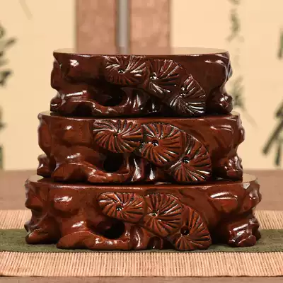 Solid wood ornaments Buddha statue Qishi base Root carving can be grooved vase Taishan stone round jade head carving pedestal shelf