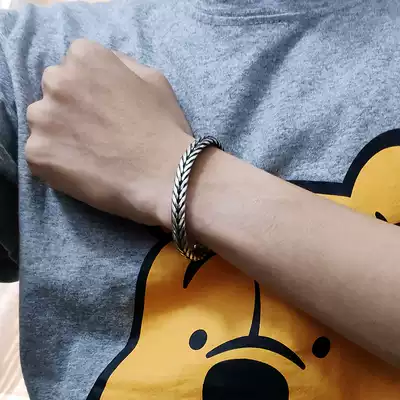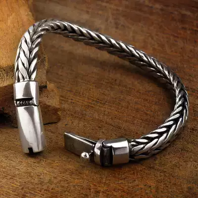 S925 sterling silver original latch pure hand-woven men's hand lettering Thai silver retro domineering tide men heavy models
