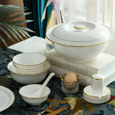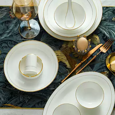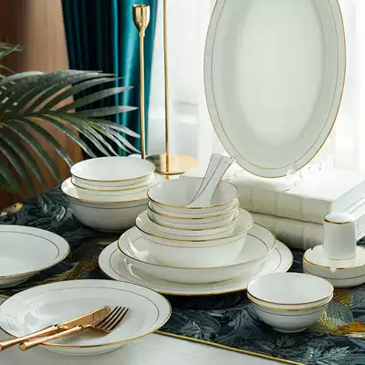 Jingdezhen bone porcelain cutlery set Nordic dishes, chopsticks, gold-edged ceramic dishes, household combination European