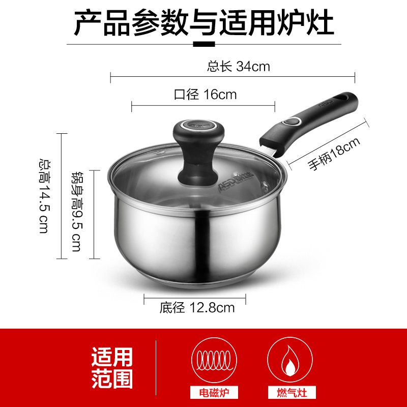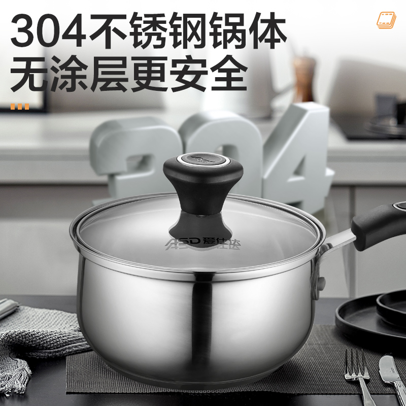 Love Shida Milk Pan Stainless Steel Foam Noodle Pan Baby Deputy Food Pan Home Baby Small Pan Cooking Hot Milk Pan Small Soup Pan