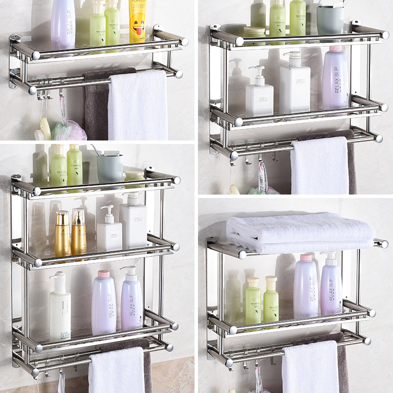 Makeup Room Bathroom Toilet shelf Wall-mounted Wall Bath Bathroom with Perforated Wash-free washstand Towel Rack