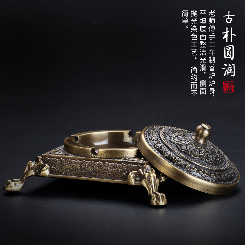 pure copper ashtray home living room tea table Nordic light luxury cylinder creative personality trendy vintage new Chinese style ornament