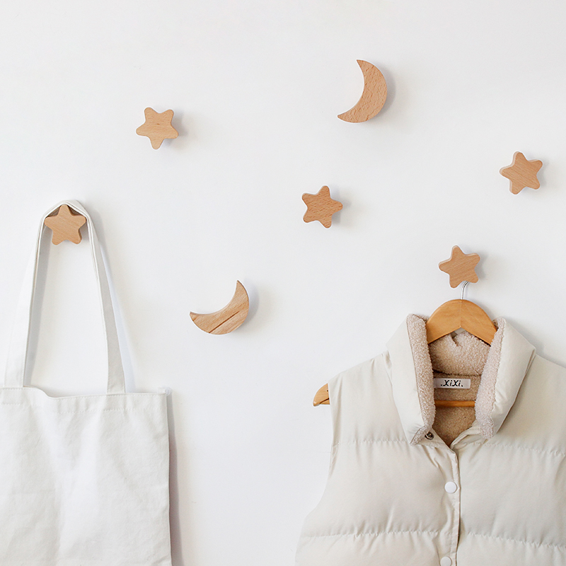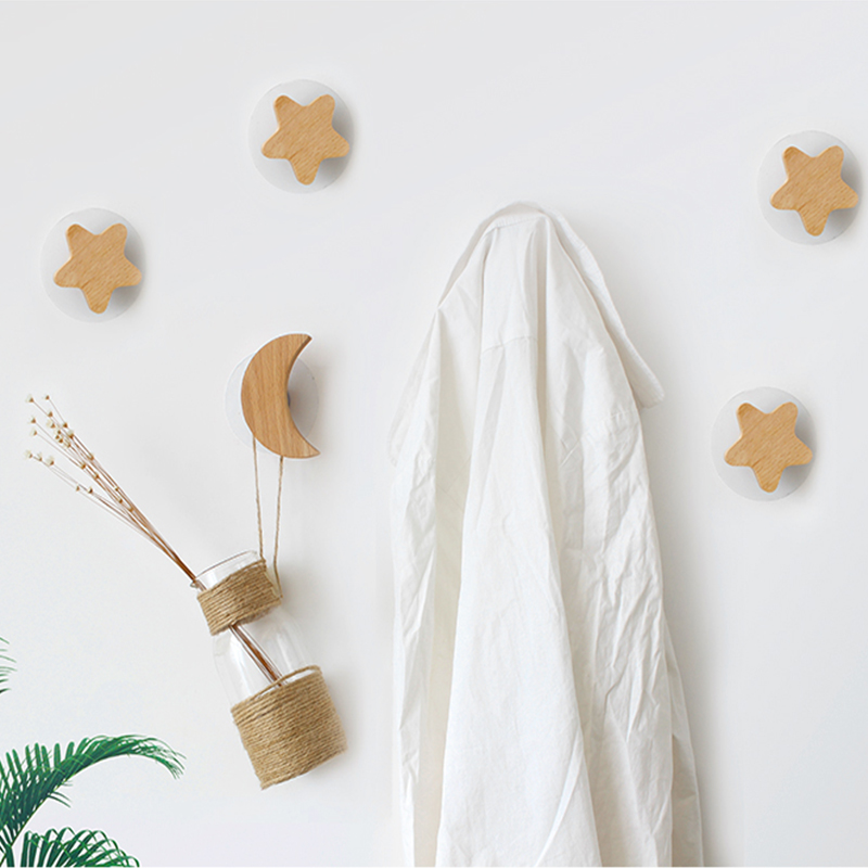 ins solid wood stars moon hangover hood hook wall door rear cartoon idea powerful weight bearing no-mark decorative adhesive hook