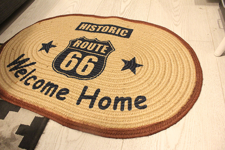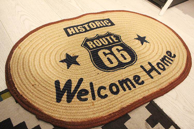 American vintage home mat US 66 road print kitchen linen sisal cushion Indian industrial style