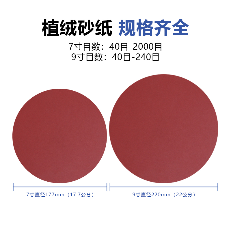 7 inch 9 inch flocking disc sand paper sheet back suede sand leather paper corner mill polished self-adhesive dry grinding polished round sandpaper