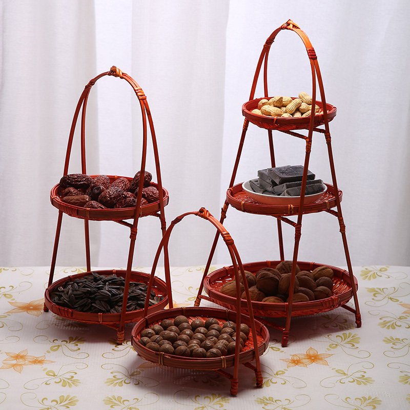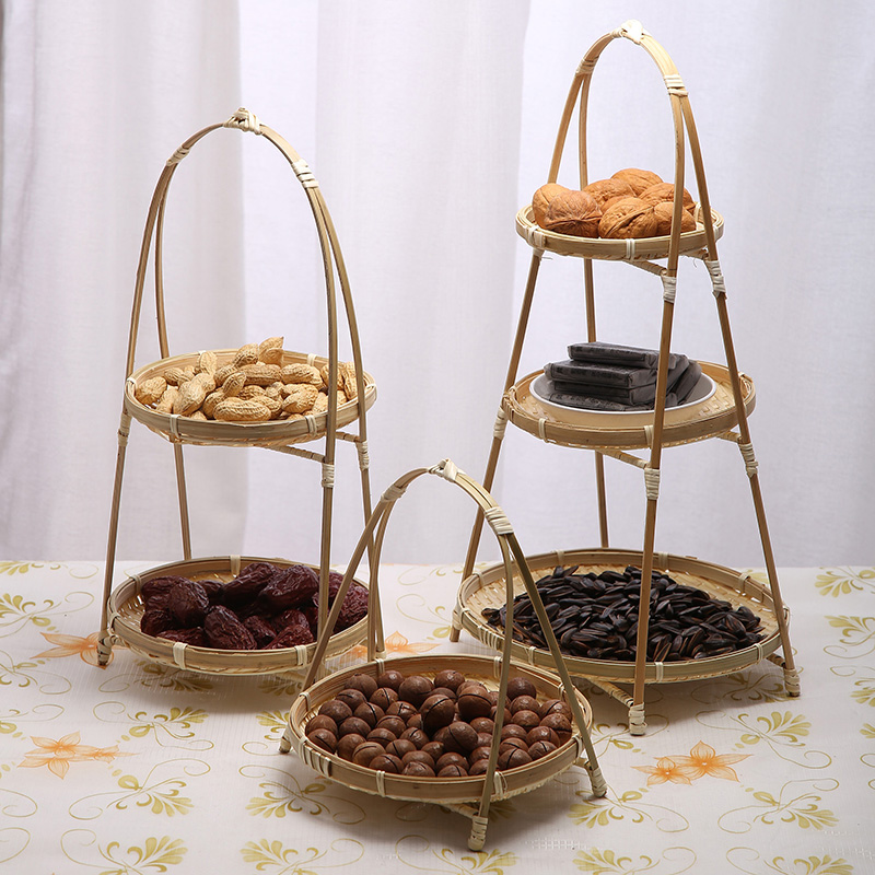 Handmade bamboo candy plate Dried fruit inventory heart plate Multi-layer fruit basket Pastry basket Hotel creative supplies Bamboo basket
