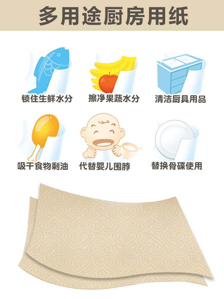 Jiayi kitchen paper oil-absorbing paper water-absorbing fried kitchen paper thickened special paper towel roll paper natural color paper oil-absorbing paper
