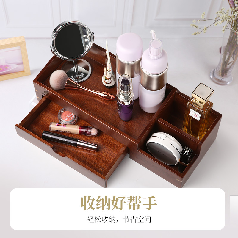 Solid Wood Cosmetics Storage Box Desktop Dust-Proof Domestic Large Capacity First Decorated Case Mouth Red Skin Care Goods Shelf
