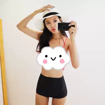 Korean solo women's high waist swimming trunks belly stretch marks bikini Versatile thin boxer swimming trunks multi-color