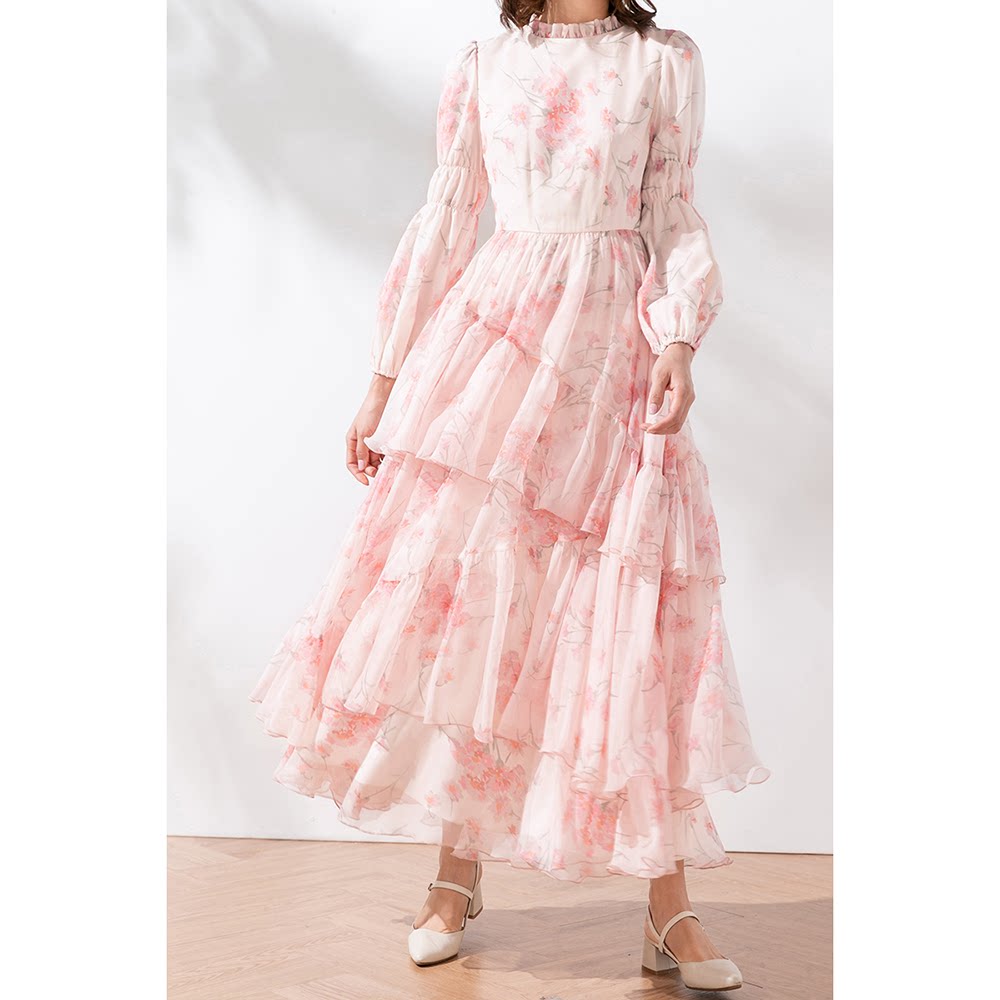 Princess Chip Textile Dress Child 2022 New Spring and Autumn Appropriate Printing Beach Dress Female 0067