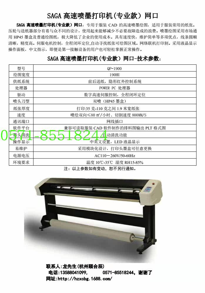 SAGA high speed clothing CAD inkjet plotter QP-1900 typographical machine MARK MACHINE Drawing Machine Print machine