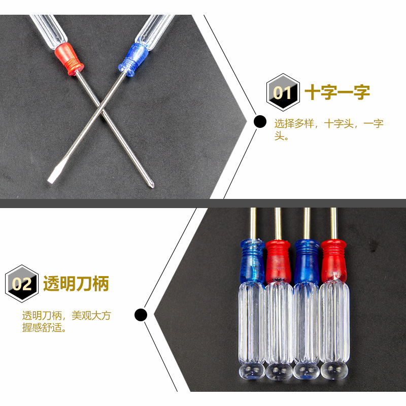 Crystal screwdriver 3MM small screwdriver transparent handle repair mobile phone computer small screwdriver one word mini batch