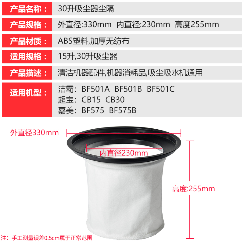 One spoon of hearty vacuum cleaner accessories BF501 BF502 unwoven cloth dust separating cloth bag filter filter core cotton mesh 70L