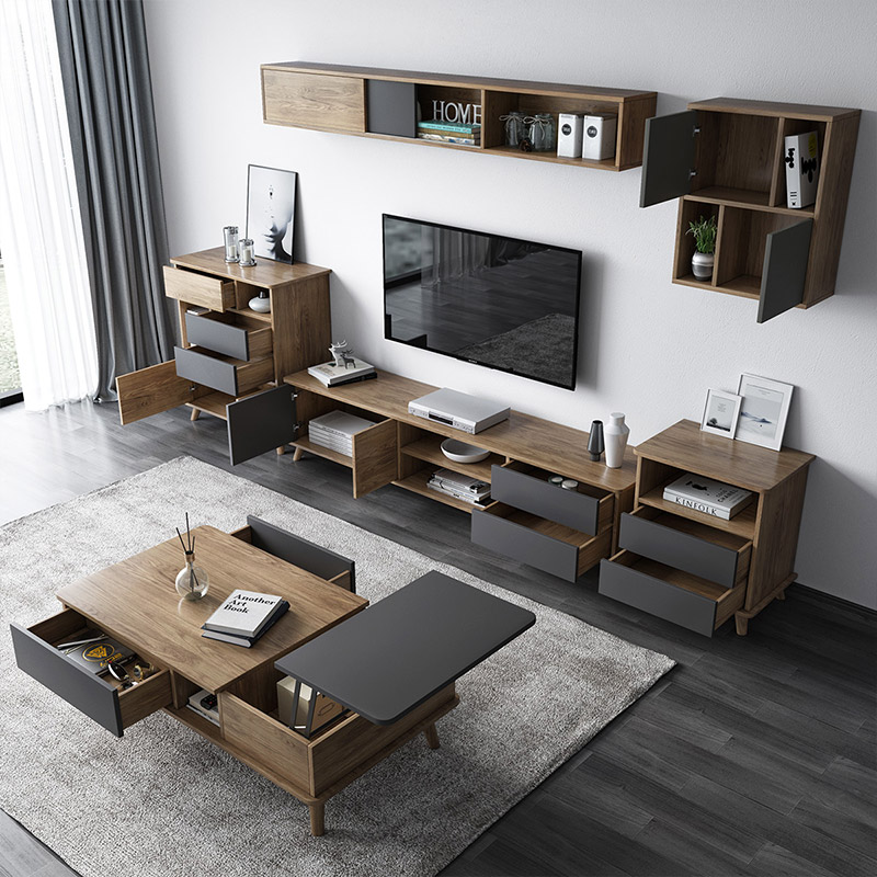 Guyi Nordic style TV cabinet coffee table combination background wall cabinet small apartment living room modern minimalist side cabinet floor cabinet